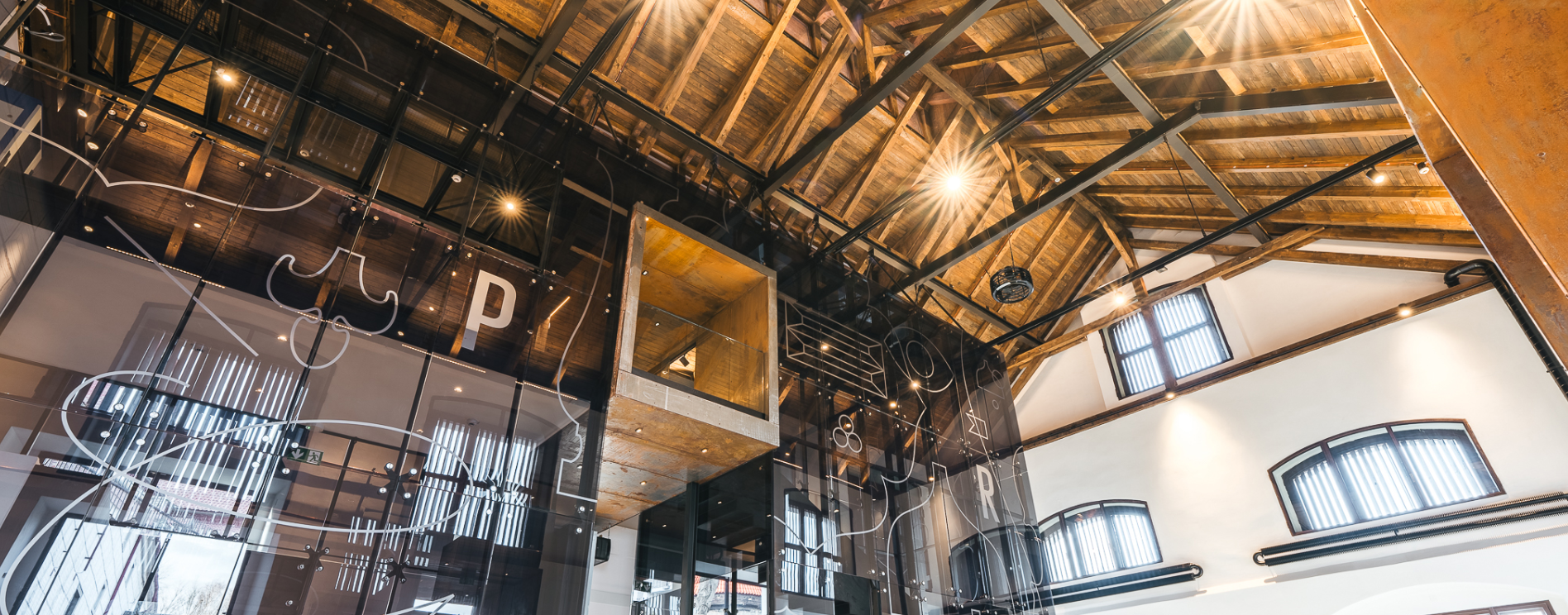 Portál - The Visitor Centre is the gateway to the Port 1560 area. Where beer was once cooled in three bulky tanks and then shipped to various pubs near and far, today the design is dominated by an anchorless metal staircase, concrete, corten, glass and a beautiful open-roofed roof.